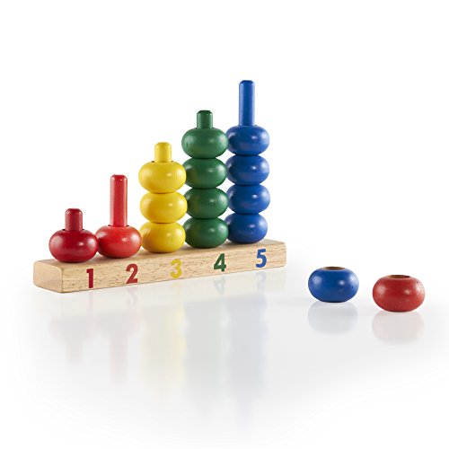 - Set includes 15 pieces and peg base Sort and stack the correct number and color rings to each corresponding peg