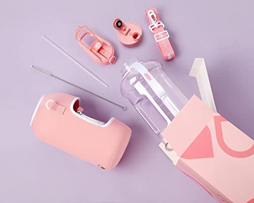 - HALF GALLON HYDRATION WITH COVERED STRAW LID: The extra large 2.2L / 74 oz plastic jug holds all the water you need to stay hydrated while you exercise. The reusable half gallon flask comes with a leak-proof & dust-proof covered straw lid, which helps protect the mouthpiece and flips open with a click of a button. The straw-lid is air-sealed: Run straw brush through mouth piece before initial use. The H2O Capsule bottle with storage sleeve comes with a bonus straw cleaning brush.