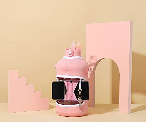 Details: The Encased Drink Bottle That Holds Your Stuff While YOU Work Out!It’s a bodybuilding, yoga lovers and gym bunny conundrum –where DO you put your cell phone, keys, ID and cards when you train? Who wants to leave their phone in a locker, when it holds those pumping workout tunes! You CAN carry it but that fumbling and leaving it on filthy gym floors is not cool, right?Well, it’s not a problem for H2O Capsule. The FIRST and ONLY water bottle with a storage holder for keeping your stuff safe while YOU get your sweat on (and then re-hydrate)! The thick 5mm insulated sleeve protects your bottle, while carrying your things! There’s a band for your phone, slot for your cards and keyring for your keys behind the container’s large handle, and the sports bottle’s sleeve also features a removable shoulder strap, making carrying your water even easier and saving space in your gym bag.And here’s what else you’ll love…This half gallon water bottle is now made of 30% thicker plastic, and comes with a leak-proof and dust-proof covered straw lid which helps protect the mouthpiece, and flips open with a click of a button! The2.25” wide mouth is perfect for adding ice cubes to your sports drink, and the insulated 5mm thick neoprene sleeve helps them stay cold for longer.The H2O Capsule – Gym Bottle AND Heavy Duty Storage! - Half Gallon Water Bottle with Handle- 5mm Thick Soft Neoprene Thermal Sleeve WITH Patented Cell Phone Holder, Keyring AND Card Holder- Leak-proof Covered Straw Lid with Wide Mouth Access (2.25” wide)- BPA and BPS Free, Food Safe Half Gallon Jug- Available in Multiple Colors and Designs- 2.2 Liter Water Bottle Supported by our 12-Month WarrantyLet everyone else struggle with their carrying their stuff in the gym… because you no longer have to with the revolutionary H2O Capsule!