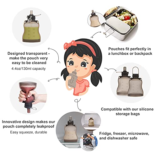 - Spill Proof Silicone Reusable Food Pouch - For Both Soft Foods and Liquids - Water, Apple Sauce, Yogurt, Smoothies, Baby Food. Perfect For Homemade Snacks On Kids Sports Teams, Classroom Snacks, Family-Friendly Parties, and Outdoor Entertaining.