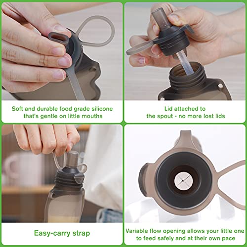 - Simple Squeeze or Roll Up The Pouch From Bottom For Little Hands That Are Bit Stronger. The Variable Flow Opening Allows Your Little One to Feed Safely and At Their Own Pace.