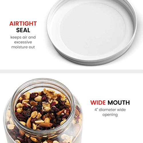 Details: Paksh 64oz Half Gallon Glass Mason Jar Wide Mouth with Metal Airtight Lid, USDA Approved BPA-Free Dishwasher Safe Canning Jar for Fermenting, Sun Tea, Kombucha, Dry Food Storage, Clear (4 Pack)