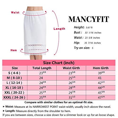 Details: Featuring lightweight materials- silky polyester and stretchy spandex, with floral lace hemline, this knee length underskirt is completely essential and long enough for midi skirts and dresses. Pretty floral lace rows at the bottom can be snipped by lifting the scalloped edge and carefully cutting all the way around. Sewn-on elastic waistband and customized length can simply help make a lovely combination. Available in black, nude, and white, you can have the right color for any skirt. Available in sizes ranging from S to XXXL, you can always find the perfect fit. We strive to provide superior service and truly want you to be 100% satisfied. We believe that any issue can be resolved and don't hesitate to contact us if the dress extender does not fit you. We guaranteed that free shipment for exchange and a full refund with 30 days purchase.