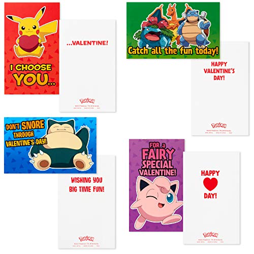 - Pokémon Valentine's Day card pack contains 32 perforated, tear-apart cards and one teacher card with fun designs featuring Pikachu, Jigglypuff, Snorlax, Venusaur, Blastoise, Charizard, and Mewtwo.