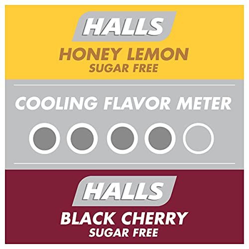 Details: HALLS Relief Variety Pack Honey Lemon and Black Cherry Sugar Free Cough Drops are ready for whatever life throws, or coughs, your way. Using the power of menthol, HALLS cough drops relieve coughs, soothe sore throats and cool nasal passages to relieve your worst symptoms. This variety pack contains both honey lemon and cherry flavored cough suppressant drops, so you can enjoy a fruity flavor when symptoms hit. These cough drops are also sugar free, making them great for a variety of lifestyles. Whether you're using these menthol cough drops for sore throat relief, cough relief or as an oral anesthetic, simply dissolve one drop in your mouth slowly, and repeat every two hours as needed. HALLS Relief cough drops are formulated for adults and children five years and older. Each variety pack contains six bags of 25 drops each, making these bulk cough drops ideal for staying stocked.
