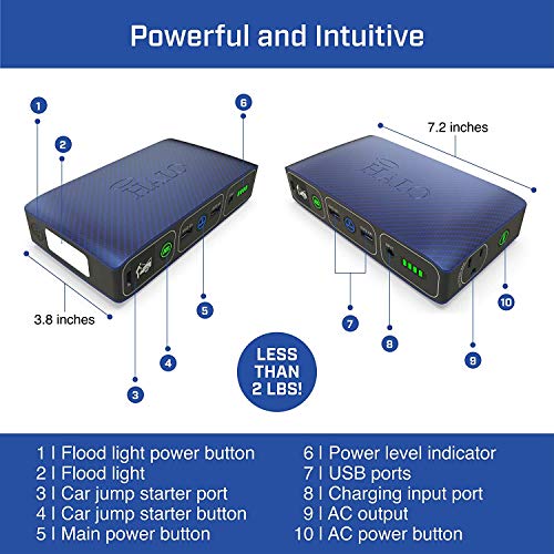- Portable Jump Starter - Battery trouble isn’t an issue when your universal power bank includes enough power to jump start your car, boat, motorcycle or lawn mower, jumper cables included. Perfect for drivers who don’t want to wait on the side of the road for a tow truck.