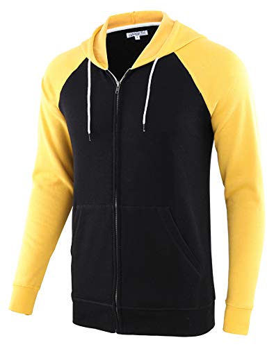 - Clean Cut Raglan Sleeve Zip Up Sweatshirt Hoodie, Featuring Color Block Sleeve.