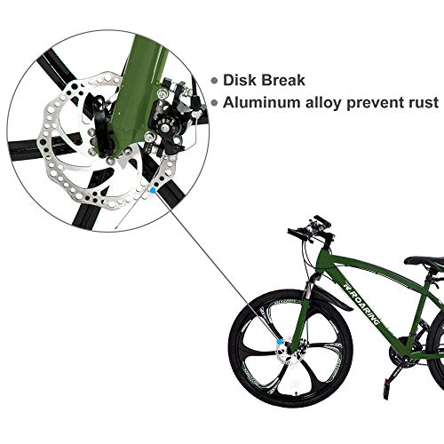 - MAGNESIUM WHEEL: 26 Inches 6 spoke fashion rims more safe and fastness. It comes with 21-speeds that can handle hilly terrains and the gear change is awesome and smooth. All-terrain, wide knobby mountain tires sit on light and durable alloy wheels for added stability.