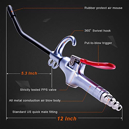 - Powerful Air Flow, new design inner supercharging construction and tapered air flow nozzle for high volume powerful materials blow-off. A reliable air compressor accessory tool.