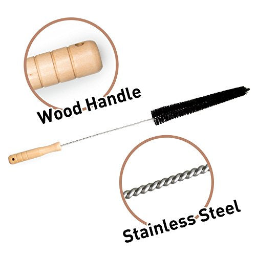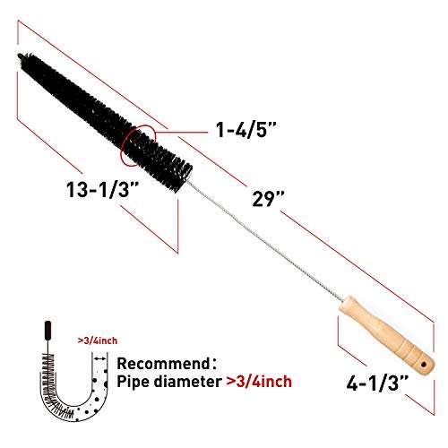 - Pure Wood handle(4-3/4”), long and flexible stainless steel Wire shaft(29" ), Sturdy and thick bristles((13-1/3”). Good working performance and quality.