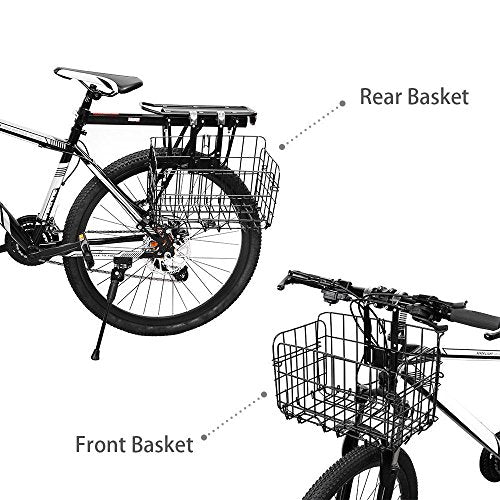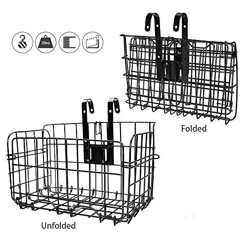 - Foldable design for convenient storage: Metal folding bike baskets. Designed to carry large loads thanks to its stout legs, cargo bands, and heavy duty handlebar clamps. Folding size: 12.99*11.8*1.97 inches.