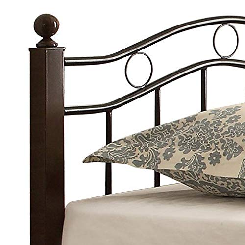 - Averny Collection transitional style twin size metal bed in black frame and chocolate brown pole 2-tone finish