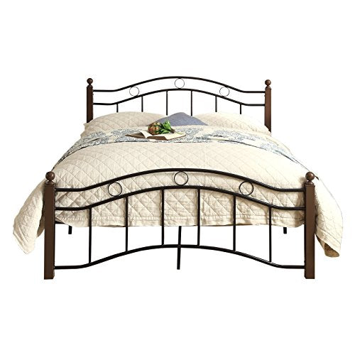 Details: Avery Collection transitional style twin size metal bed in black frame and chocolate brown pole 2-tone finish, Platform bed and slat kit included, no box-spring/foundation is required, Great addition to any room with limited space.