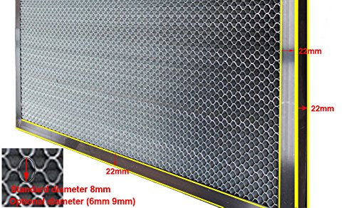 Details: ParametersMaterial: Aluminum Alloy (frame) and Galvanized Steel (body)Size: 300mm x 500mm -5mm (with frame)256mm x 456mm -5mm (without frame)Thickness of frame: 22mmThickness of honeycomb working table: 20mmDiameter of table hole: 8mm (standard); 6mm, 9mm (Optional).Size can be customized.Package includes:1PCS Honeycomb Working Table 300*500mm