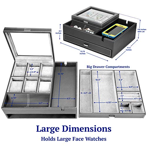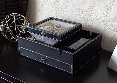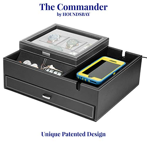 - THE "COMMANDER" IS THE WATCH LOVER'S DRESSER VALET BOX - Patented by HOUNDSBAY, and inspired by the popular HOUNDSBAY "Admiral," this large organizer box combines an oversize charging station, catchall tray, accessory drawer, and large-slotted watch case under a real glass display lid.