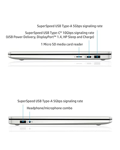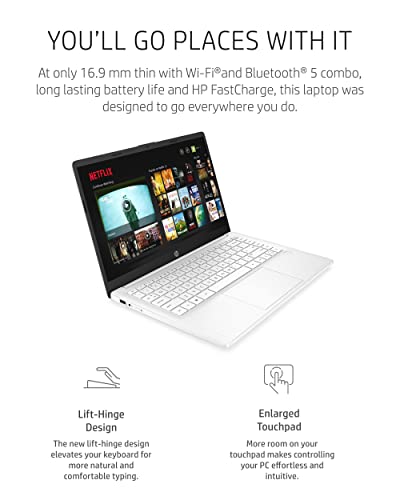 Details: Stay connected with one of HP's thinnest laptops. This HP touchscreen laptop displays everything from games to the latest shows in stunning quality thanks to its 1080p, micro-edge, anti-glare screen (1). Not only does your content look great, but you can interact with it too with intuitive touchscreen controls. Master multitasking and enjoy lighting-fast connectivity with your HP 14-inch laptop’s Qualcomm® Snapdragon™ 7c processor (2). Plus, all your system’s visuals run smoothly courtesy of this laptop’s Qualcomm® Adreno™ 618 GPU graphics (3). Store more of what you love and multitask faster, even with multiple windows open, with this slim laptop’s 128 GB of eMMC storage and 8 GB of RAM (4). Stay powerfully connected from morning till evening with up to 11 hours and 30 minutes of battery life on a single charge (5). And in case you need additional power fast, recharge from 0 to 50% in approximately 30 minutes with HP Fast Charge technology (6). This Windows 11 laptop gives you a fresh perspective as you connect, game, and create in new ways (7). Enjoy all the new features this latest operating system has to offer with the peace of mind of HP's 1-year limited warranty to cover your Windows laptop. Just as reliable as the battery life and as new as the operating system, this traditional laptop computer features a Wi-Fi 5 (2x2) WLAN adapter and Bluetooth® 5.0 combo (8) (9). Because little things make a big difference, HP has designed this ultra-thin laptop to be ergonomic and productive. The new lift-hinge design elevates your keyboard for more natural and comfortable typing, while the enlarged touchpad gives your fingers more room to navigate your mouse. What’s more, the enlarged touchpad also features multi-touch supported gestures like zooming, scrolling, and right-clicking. Enjoy quick and secure logins with your HP laptop’s patented 3-D fingerprint reader (10). Designed to reduce excess waste, this laptop touchscreen computer is made with sustainable, post-consumer materials (11) (12) and is shipped in completely recyclable packaging (13). Always innovative, this device has also earned an ENERGY STAR® certification (14) and EPEAT® Gold registration (15). (1) Full High Definition (FHD) content is required to view FHD images. (2) Multi-core is designed to improve the performance of certain software products. Not all customers or software applications will necessarily benefit from the use of this technology. Performance and clock frequency will vary depending on application workload and your hardware and software configurations. Qualcomm’s numbering is not a measurement of clock speed. (3) Shared video memory (UMA) uses part of the total system memory for video performance. System memory dedicated to video performance is not available for other use by other programs. (4) For storage drives, GB = 1 billion bytes. The actual formatted capacity is less. Up to 5.1GB of disk is reserved for system recovery software. (5) Battery life tested by HP using continuous FHD video playback, 1080p (1920x1080) resolution, 150 nits brightness, system audio level at 17%, player audio level at 100%, played full-screen from local storage, headphone attached, wireless on but not connected. Actual battery life will vary depending on configuration and maximum capacity will naturally decrease with time and usage. (6) Recharges your battery up to 50% within 30 minutes when the system is off (using the “shut down” command). Recommended for use with the HP adapter provided with the notebook, not recommended with a smaller capacity battery charger. After charging has reached 50% capacity, the charging speed will return to normal speed. Charging time may vary +/-10% due to System tolerance. (7) Not all features are available in all editions or versions of Windows. Systems may require upgraded and/or separately purchased hardware, drivers, software, or BIOS update to take full advantage of Windows functionality. Windows is automatically updated and enabled