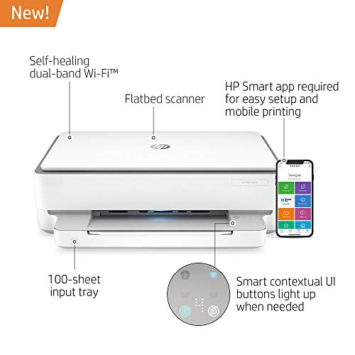 Details: Designed to make printing easier for the whole family, the HP ENVY 6055 All-In-One Printer lets everyone print, scan, and copy everyday documents, schoolwork, borderless photos, and more. This wireless picture printer can order ink for you and deliver it to your door with up to 50% savings on ink using the HP Instant Ink delivery service, so you can print high-quality documents and photos when you need them (subscription required). Set up and connect the all-in-one printer to your family's mobile devices in a few easy steps for remote scanning and sharing using the HP Smart app. And, keep connected and reduce interruptions with self-healing Wi-Fi™.