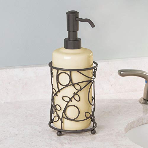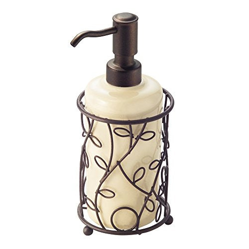 Details: The iDesign Twigz Ceramic Soap Pump is a modern and practical accent for your kitchen or bathroom sink. The stylish vanilla and bronze color scheme of this quality holder will look good as new through years of quality use. It holds up to 13 oz. of your favorite soap or lotion for your convenience. This round ceramic and steel soap pump is sleek and modern with a wide opening, making refilling the soap easy! The pump is enclosed by a twig and leaf wired design that is elegant and perfect for any decor. The study base will prevent the soap dispenser from sliding around or being knocked over. The iDesign Forma Ceramic Soap Pump measures 4.5" x 4.5" x 8.5", the perfect size for your vanity or counter space. With iDesign by InterDesign, you can #LiveSimply every day.