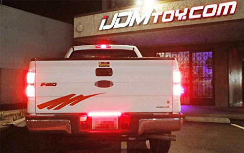 Details: Introducing iJDMTOY's all new 17" mini LED tailgate light bar. This red led light bar will make your truck more visible on the road while also adding awesome unique style. Installation is simple, you just need to mount this mini LED light bar to the trunk tailgate and tab the wires to the existing brake and tail lamp. Features Improve both style and safety Powered by 23 pieces high power NICHIA Super FLUX LED emitters with 460 lumen lighting output Sonically-sealed poly-carbonate lens and waterproof housings exterior use Universal for most trucks' tailgate Comes with tail light and brake light mode (bright/dim modes) Meets DOT FMVSS 108 requirement (DOT & SAE Approved) Size: 17.25" x 1.10" x 1.00" Pigtail wires: 10 inches long Since this is an add-on product, some drilling and wiring actions are required to install this product. Fit most trucks such as Chevy Chevrolet Avalanche Colorado CK Pickup Silverado 1500 2500HD 3500HD Tahoe Suburban Trailblazer, Dodge Dakota Durango Ram 1500 2500 3500 4500 RAM1500 RAM2500, Ford Expedition Explorer F150 F250 F350 F450 F-150 F-250 F-350 F-450 Super Duty Ranger, GMC Canyon Denali Jimmy Sierra Yukon XL, Jeep Grand Cherokee Wrangler, Nissan Frontier Titan Xterra, Toyota 4Runner FJ Cruiser Land Cruiser Tacoma Tundra