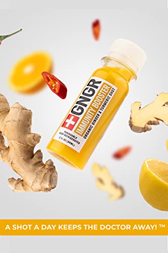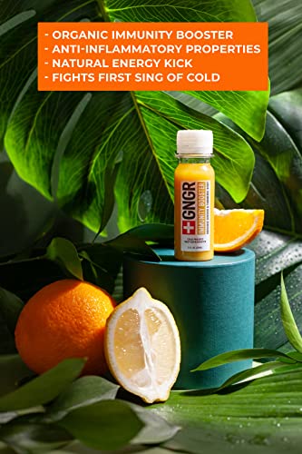 Details: Our brand philosophy is a modern approach to ancient wisdom. We crafted perfect wellness formula of strong and comforting shots using our old family recipe. They prevent sickness and FIGHT illness at its FIRST SIGN! Our IMMUNITY BOOSTING ginger shots deliver a quick dose of ANTIOXIDANTS, VITAMINS and MINERALS — in a super concentrated dose. They are the perfect natural remedy to promote overall wellness and detoxification. We produce GNGR shots without any concentrates, preservatives, added sugars and nothing artificial. It's very simple- we cold-press high quality ingredients, bottle them up and deliver straight to your door. Our key ingredient is Peruvian Ginger Root, that is well known as a superfood with powerful properties. We combined ginger root with turmeric, orange & lemon juice, added a pinch of cayenne pepper and created Immunity Booster loaded with VITAMIN C. As anti-inflammatory supplement, shot's good for sore muscle recovery and could be used as post workout supplement