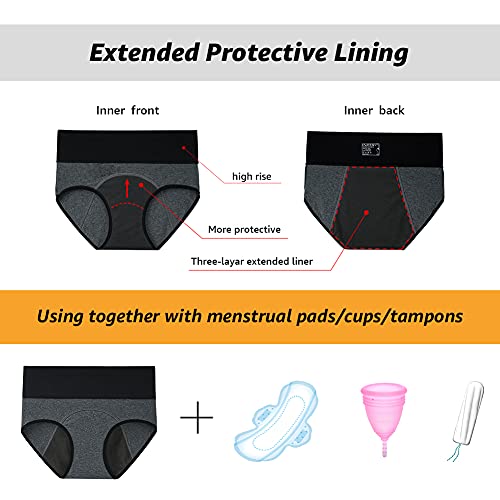 - CARING DESIGN: High waisted design of the briefs provides warmness and gentleness, also it’s of great breathability. They can provide with a good protection on your waist and belly even in special times. And the elastic waistband is friendly to your skin and won’t roll or leave marks on your waist.In addition,we made a new design on crotch, and replaced the light grey crotch to dark which is more practical in period time