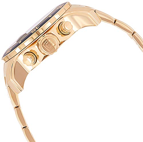 - 49 mm 18k gold-plated stainless steel case with flame-fusion dial window and swiss quartz movement with analog display. Caliber: VD53