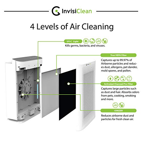 - Complete Filtration & Germ Disinfection - Easily replaceable H13 99.985% true HEPA filter and activated carbon prefilter with optional ionizer and disinfecting UV-C light.