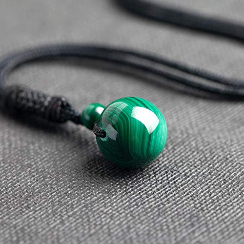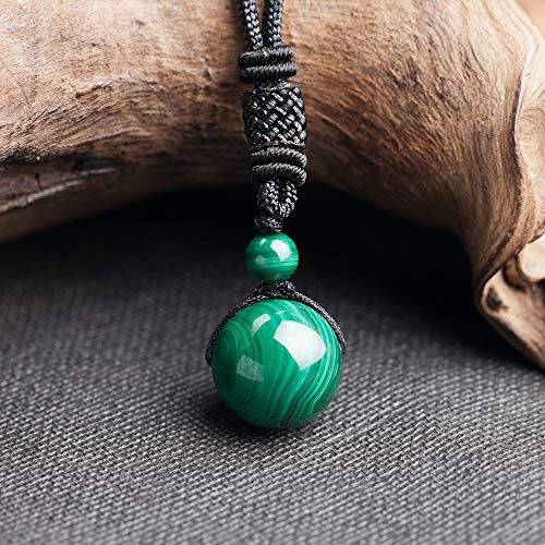 - Material: 16mm + 8mm (Top bead) Natural Malachite, Round Bead Shape, Chain: Adjustable Black Nylon Cord 24 inch