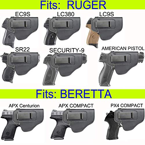 Details: Gun Holster leather for Pistols Concealed Carry Inside the Waistband. IWB Holsters is High Quality Leather, Handmade,Solid, Beautiful and Comfortable. Holster Clip width: 2.0 inches, A Belt of 1.8 inches or Less is Suitable Fits:Glock19/26/27/28/29/30/33/36/39/42/43 | / S&W SD9 SD40 VE | M&P 9 40 45 380 shield / MP 9 40 45 M2.0 / MP22 | SA XD XDM XDE XDS 3-4 inch BARREL | Taurus G2C / TH 9mm / MILLENNIUM G2 / SLIM | HK VP9SK / P30SK / P30 / P2000 / P2000SK / USP 9MM COMPACT | SIG P225 / P229 / P365 / P320 / 1911 COMPACT / SP2022 | RUGER EC9s / LC9s / LC380 / SR9C / SR40C / SR22 | BERETTA APX Compact Centurion / Px4 Compact & All Similar Guns After-sales service: Amazon's free return policy, as well as our lifetime warranty(Except for Man-Made Damage).