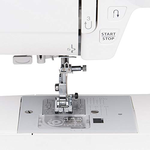 - Convenience buttons like a start/stop button, reverse, locking stitch and needle up/down