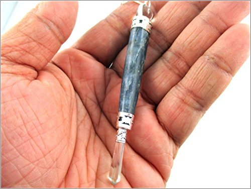 Details: Brand: JET INTERNATIONAL Product Name: Blue Kyanite Wand Pendulum approx. 3.5 inch long Purpose: When our chakras are blocked, or not in balance, the free flow of energy is impeded, leading to physical, emotional, mental or spiritual dis-ease. Crystals help us unblock and activate them. . Description: Best for Healing, Chakra Balancing, Positive Energy, Meditation, Sound Sleep, Gift and many more applications. Gives great sense of Spiritual Awakening, Mental Peace, Psychic Horizon, Magical, Divine They can be used in many different methods of healing. They can be used to heal the entire body or aura, or they can be used on a specific area of the body, or on a particular chakra. Removes all bad energy, evil forces, negativity, wrong choice. Best suited for Health, Wealth, Progress, Prosperity, Family Bonding, Long Lasting Relationship. Stress Relief, Crystal Therapy, Good Luck, Fortune, Self Esteem. To program a crystal for specific use or with specific energies, sit quietly away from distractions or strong electrical devices and external energies, then hold the crystal in front of you, clear your mind and focus on the stone. Give the crystal a cleanse with white light as explained above. Concentrate on the specific energy that you wish to program the crystal with, and 'transmit' the energies and thoughts from your mind directly to the stone. Benefits Enhances; awareness visualization, intuition, psychic abilities. Enhances happier moods very noticeable. Clear's negative entities Helps reach higher vibration of energies Helps cleanse the chakra's. Disclaimer Jet International Brand & Products Copyrighted. Any Copying Prohibited. Any violation in the same regards may lead to account suspension on Amazon