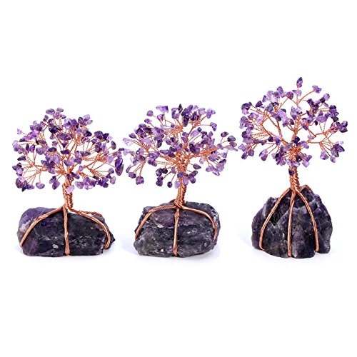 - UNIQUE DESIGN-Amethyst Healing crystals Money tree ornament with amethyst stone stand,Handmade Rose Gold Copper wire wrapped tree of life Tumbled Gemstones healing chakra crystal quartz Lucky tree Bonsai Style wealth fengshui decor statue Sculpture.When you received it, pls separate the branches and tree roots as picture showed. Make this masterpiece work by yourself.