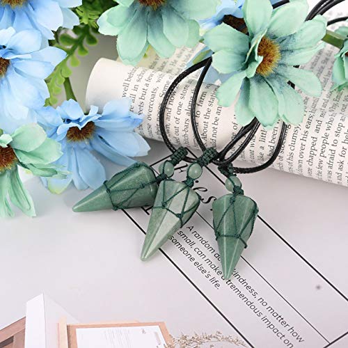 - Material: natural crystal + leather rope. Necklace is hand-made winding and the necklace is adjustable. You can adjust it according to your need. Pendants are hand carved and polished from natural material, so it may vary in color, texture from each other. Total Length of Rope:28"-32", Adjustable, Rope width:2mm. Pendant size:1.46"-1.54"x0.71". It weights only about 16 grams for each healing necklace. Light weight and comfortable for wearing.