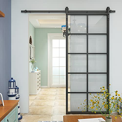 - 【MORDEN DESIGN & FUNCTIONALITY】--- This elegant glass barn door not only is trendy decor for our home, but also space-saving door! Clear tempered glasses perfectly allow natural light in. Sliding doors saves space and allows for using in tighter places where a normal swinging door may not be ideal. Such as kitchen,living room, closet, study room and so on.