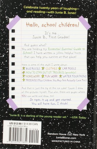 Details: Product Description “Hilarious. Barbara Park makes reading fun.” —Dav Pilkey, author of the Dog Man series Get ready to go back to school with the world's funniest kid, Junie B. Jones, in this interactive classroom survival guide! The #1 New York Times bestselling chapter book series has been keeping kids laughing—and reading—for more than twenty-five years. Over 65 million copies sold! Hello, school children! Hello! It's me . . . Junie B., Jones! I have been going to school for over one and a half entire years now. And I have learned a jillion things that will help you survive at that place. And guess what? NOW I AM GOING TO PASS THIS INFORMATION ON TO Y-O-U!!! I wrote it all down here in Junie B.'s Essential Survival Guide to School! Here is some of the stuff I wrote about: * Bus Rules * Teachers (and other bosses) * Carpools * How to Stay Out of Trouble (Possibly) * Homework * Funwork * Friends (Plus Children You May Not Actually Care For). And that is just the tip of the ice cube! 'Cause I drew all the pictures myself. Plus also, there are pages where Y-O-U can write and draw, too! So open it up and get started. You will have fun, I think! About the Author BARBARA PARK is best known as the author of the wildly popular New York Times bestselling Junie B. Jones series, which has kept kids (and their grown-ups) laughing—and reading—for over two decades. Beloved by millions, the Junie B. Jones books have been translated into multiple languages and are a time-honored staple in elementary school classrooms around the world. Barbara once said, “I’ve never been sure whether Junie B.’s fans love her in spite of her imperfections…or because of them. But either way, she’s gone out into the world and made more friends than I ever dreamed possible.”Barbara Park is also the author of award-winning middle grade novels and bestselling picture books, including Skinnybones, Mick Harte Was Here, and Ma! There’s Nothing to Do Here!Barbara Park was born in New Jersey in 1947 and spent most of her adult life in Arizona, where she and her husband, Richard, raised two sons. Barbara died in 2013, but her legacy lives on in the laughter her books give to readers all over the world.