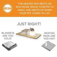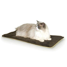 Details: The K&H Thermo-Kitty Mat is an affordable heated sleeping mat with a dual thermostat heater buried beneath soft foam to make a comfortable napping place for cats. The surface temperature of the K&H Thermo-Kitty Mat will remain 10-15 degrees above ambient air temperature when not in use by the pet. The product is designed such that the surface will only warm to full temperature when the pet is on the mat. As a simple test, you may place a pillow on top of the K&H Thermo-Kitty Mat - after about 15 minutes the under-side of the pillow should feel warm, but not hot. This is the warmth that your pet will feel when lying on the K&H Thermo-Kitty Mat. Cord Length - 5.5 ft