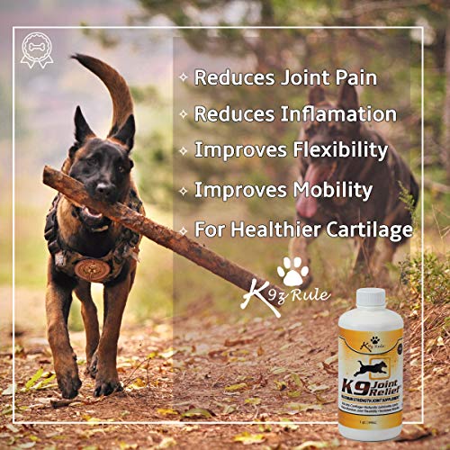 Details: Is Your Dog Suffering from Joint Pain? It's difficult to see your dog start to slow down as he grows older! But a few teaspoons a day of K-9 Joint Relief’s glucosamine for dogs can change all that. Many dog owners are experiencing the POWER of K-9 Joint Relief and now you can too! We GUARANTEE your dog is going to experience less discomfort, less pain, increased mobility and better overall health or you get ALL your money back! K-9 Joint Relief’s Formula contains an unmatched 1600 mg of Glucosamine Hcl, 1200 mg of Chondroitin Sulfate and 1000 mg of Opti-MSM for PROVEN results. Glucosamine, Chondroitin and Opti-MSM are natural substances that help maintain the health and resiliency of joints and connective tissues, while promoting general good health. Liquid supplements are PROVEN to absorb more quickly & efficiently than tablets, offering better & faster results. * SUPERIOR VALUE, lasts longer than other formulas. * 62% MORE Glucosamine than other formulas * 50% MORE Chondroitin than other formulas * Contains OPTI-MSM, tested at OVER 1000 TIMES greater sensitivity than regular MSM * Ultra PURIFIED and DISTILLED to provide the PUREST form of sulfur needed for structural integrity of joint cartilage.