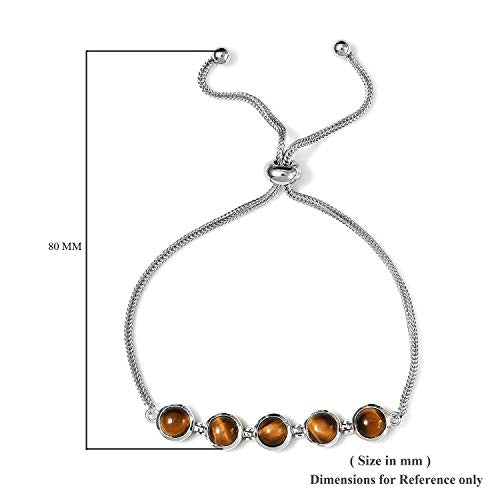Details: Designed to embellish your appearance, this South African tigers eye bolo bracelet from the KARIS Collection is something you would not like to share with anyone. This adjustable bracelet features five rounds of tigers eye gemstones with a remarkable swirl of gold chocolate and black that mixes together to form a silky golden brown stone. Set in a frame of platinum bond brass and stainless steel, this jewelry piece will enhance your style quotient in seconds.