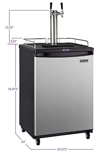 Details: Designed for commercial and residential kombucha dispensing, The Kegco KOM163S-2 two faucet digital kegerator features a freestanding black cabinet with a field-reversible Stainless Steel door, A chrome guard rail, a dishwasher-safe drip tray, and easy-rolling casters. The roomy 5. 8 cu. Ft. Interior can hold one full size, Pony, or quarter slim keg, two 5 gallon commercial kegs, three ball lock kegs, or two pin lock kegs. The double faucet draft tower allows you to store and dispense from two 5 gallon kegs simultaneously. The KOM163S-2 features a steel interior floor mat that evenly distributes the weight of your kegs for added durability. When you aren't storing and dispensing kegs, you can convert the kombucharator into a regular all-refrigerator using the included wire shelves. Though some keg dispensers Use an imprecise dial to control Internal Temperature, Kegco KOM163S-2 utilizes digital temperature controls and an LED display, allowing you to set the exact temperature degree you want. The unit boasts one of the widest temperature ranges of any kombucha refrigerator on the market today, allowing you to store and dispense kegs between 32 and 75 degrees Fahrenheit. To ensure your 'bunch' Stays deliciously chilled from keg to glass, This kombucha dispenser has fan-forced cooling and an air-cooled draft tower. The kegerator also features automatic defrost. To aid you in dispensing your favorite 'bunch' Right away, This kegerator includes a complete Dual faucet keg tapping kit with a double faucet draft tower, two Faucets, an empty CO2 tank, a CO2 regulator, and two sets of ball lock keg couplers.