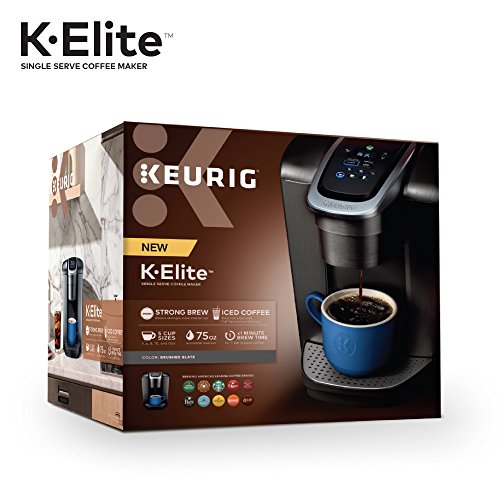 Details: The Keurig K-Elite brewer blends a premium finish and programmable features to deliver both modern design and the ultimate in beverage customization. With a striking brushed finish and metal details, it’s a stylish addition to any kitchen. The Keurig K-Elite single serve coffee maker features Strong Brew for when you want to brew a bolder cup of coffee, and an Iced button to brew hot over ice for a refreshing, full-flavored iced coffee. It features five brew sizes, so you can brew your favorite coffee, tea, hot cocoa, or iced beverage at the touch of a button. Choose from hundreds of delicious varieties of K-Cup pods, or brew your own ground coffee using the Universal My K-Cup Reusable Coffee Filter (sold separately). The K-Elite brewer offers programmable features like auto on and temperature control, as well as providing hot water on demand for instant soups and oatmeal, and the large 75oz removable water reservoir lets you brew 8 cups between refills.