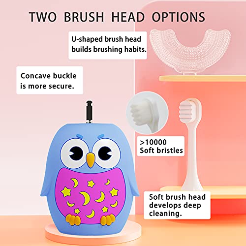 - 【TWO BRUSH HEAD OPTIONS】This toddler electric toothbrush provides two brush heads, Food-grade silicone U-shaped brush head and soft brush head. U-shaped design is perfect for toddlers and children's teeth, soft silicone providing a comfortable brushing sensation, thus developing healthy brushing habits, with the soft brush head for more efficient deep cleaning.