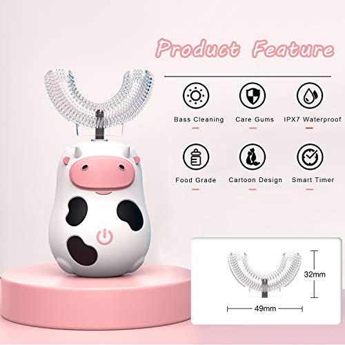 - Lovely Cartoon Design-Cute cow cartoon theme design will arouse children's brushing interest, making brushing easy and fun for little kids 2-14 year old.Includes 2 different replacement toothbrush head. Kids can take two different brushing experiences, brushing will no longer be monotonous!
