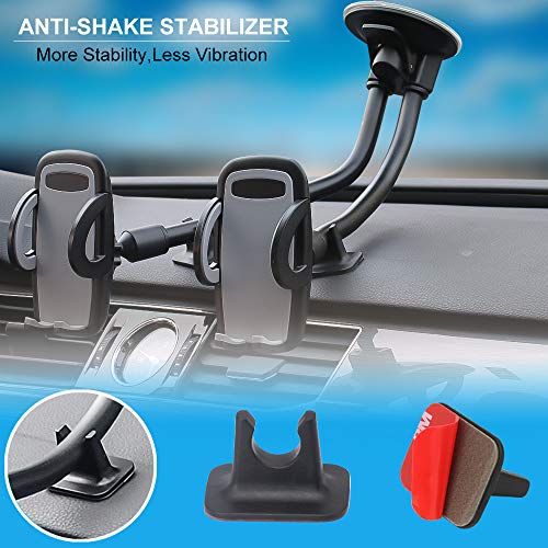 - Long arm gooseneck with exact stabilizer: high quality aluminum material gooseneck long arm up to 13 inches, make the device closer to your sight.With long flexible arm, it is easy to position and compatible with more models of cars. anti-shake small mount, Feel confident that your mobile device secure even if the road gets bumpy.