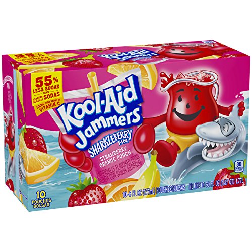 Details: Kool Aid Jammers Strawber Orange Punch Flavored Drink is gushing with juicy strawberry orange punch flavor. This refreshing strawberry orange punch drink is an excellent source of Vitamin C, and is an excellent way to treat your family to some delicious fun. These Sharkleberry Fin drink pouches are packaged in a convenient easy-open fridge pack that helps keep your refrigerator neat and organized. Each 60 fluid ounce case of flavored drinks contains ten 6 fluid ounce ready-to-drink pouches. Store this box to go drink pouches in the refrigerator for a refreshing strawberry orange punch drink on the go. There are so many ways to enjoy Kool Aid. Flavorful fun made easy - available in a rainbow of flavors!
