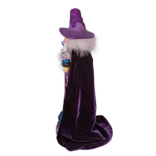 Details: Hollywood nutcrackers is a whimsical collection of nutcrackers created exclusively for Kurt S. Adler, Inc. and features an assortment of designs that put a unique, vibrant, memorable twist on traditional nutcrackers. This 18-Inch Hollywood purple Wizard nutcracker from Kurt Adler is a fun and festive addition to any holiday decor. This special piece features various shades of purple with silver detailing. Special touches in this piece include a gemstone-topped staff, an Owl, stars, and a large dramatic wizard's hat and robe.