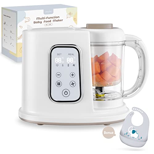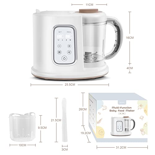 - ❥【Easy to Use & Clean】: LED Touch Panel: One-key operation, saving time and effort; Digital Display Screen: setting and actual working status, timing, and temperature control are clear at a glance. The steaming and mixing cups are detachable for easy cleaning. ☛If necessary, pls download the electronic version of baby food prep system recipes from our description or contact us.