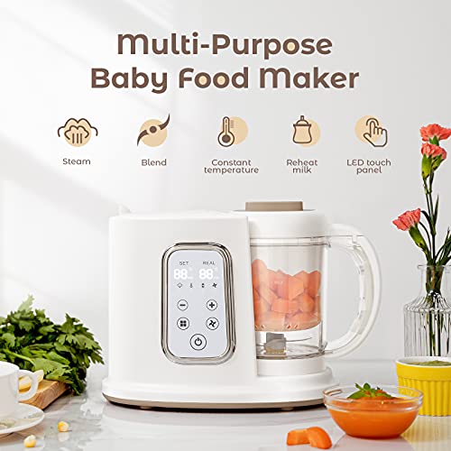 - ❥【4 in 1 Processor】Steaming, Mixing, heating, and Constant Temperature milk are all in one. The thermostat function is very suitable for warming milk for a baby, it allows you to warm the milk to a certain temperature and keep it constant.