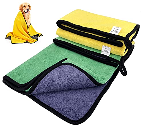 - SUPER ABSORBENT DOG TOWEL: Microfiber dog towel super absorbent made of 500GSM upgraded microfiber fabric,soft thick and tightly, Dog towel can absorb 7 times their weight in water or mud than regular cotton towels.Created by even the wettest dog!