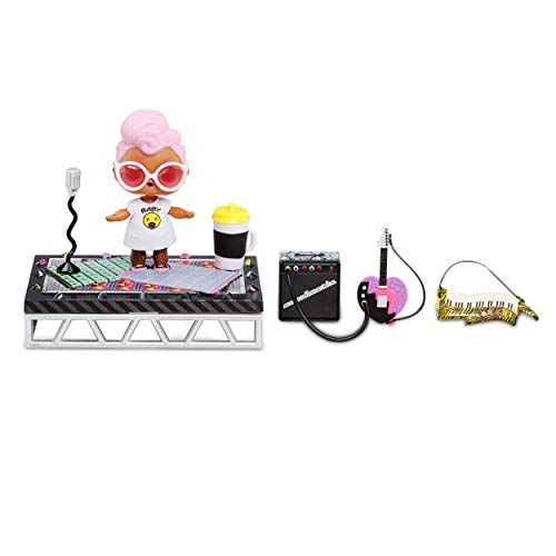 Details: Unbox 10+ surprises with L.O.L. Surprise! furniture with grunge grrrl doll! The music festival pack includes rereleased series 3 character Grunge grrrl, ready for the event of the summer. Grunge grrrl comes with an epic concert stage on a platform for a rocking' Performance. She also comes with everything she needs to rock the stage – a music amp, a guitar, a keytar and a microphone on a stand. The box folds out to become an awesome venue playset for B.B.S to rock out! Collect all 4 styles to glam up the life of your L.O.L. Surprise! dolls with L.O.L. Surprise! furniture. Collect Grunge girl's big sister, alt grrrl, who is one of the series 2 L.O.L. Surprise! O.M.G. Characters!