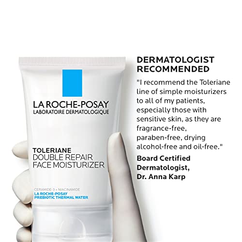 - Toleriane Double Repair Face Moisturizer is formulated with dermatologist-recommended ingredients including ceramide-3, niacinamide, glycerin and La Roche-Posay Prebiotic Thermal Water.